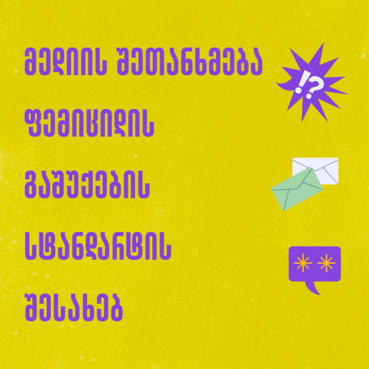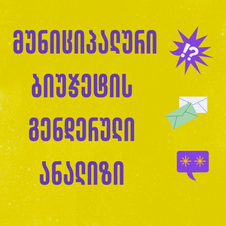 კვლევები და პუბლიკაციები კლიმატის ცვლილებით გამოწვეული კატასტროფები და ქალები: ეკომიგრაციის პრევენციისა და მართვის სისტემური პრობლემები პოლიტიკის დოკუმენტი – შშმ ქალებისა და გოგონების გენდერული თანასწორობის მიღწევისთვის მუნიციპალური გენდერული პოლიტიკის განხორციელების რეკომენდაციები კახეთში, გურიასა და რაჭაში მედიის შეთანხმება ფემიციდის გაშუქების სტანდარტის შესახებ საქართველოს შრომითი მიგრანტი ქალების სოციალურ-ეკონომიკური სტაბილურობა საბავშვო ბაღებში შენობისშიდა ჰაერის დაბინძურების კვლევის შუალედური ანგარიში გენდერის ინტეგრირება საქართველოს კლიმატის პოლიტიკაში რეგიონალური კონფერენცია: გენდერული დეზინფორმაცია და ეთიკური მედია გაშუქება – მოკლე მიმოხილვა ფემინისტური კალენდარი 2023 მუნიციპალური ბიუჯეტის გენდერული ანალიზიბიბლიოთეკაში დაბრუნება